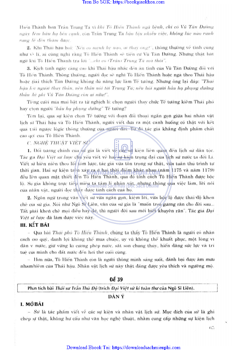- ĐỀ 39. PHÂN TÍCH BÀI THÁI SƯ TRẦN THỦ ĐỘ (TRÍCH ĐẠI VIỆT SỬ KÍ TOÀN THƯ CỦA NGÔ SĨ LIÊN)