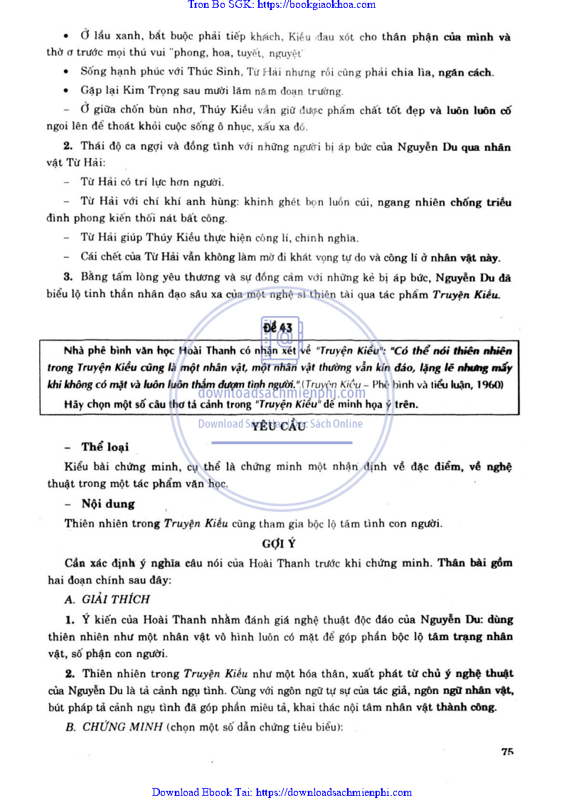 ĐỀ 47. NHÀ PHÊ BÌNH VĂN HỌC HOÀI THANH CÓ NHẬN XÉT VỀ “TRUYỆN KIỀU”: “CÓ THỂ NÓI THIÊN NHIÊN TRONG TRUYỆN KIỀU CŨNG LÀ MỘT NHÂN VẬT, MỘT NHÂN VẬT THƯỜNG VẪN KÍN ĐÁO, LẶNG LẼ NHƯNG MẤY KHI KHÔNG CÓ MẶT VÀ LUÔN LUÔN THẮM ĐƯỢM TÌNH NGƯỜI”. HÃY CHỌN MỘT SỐ CÂU THƠ TẢ CẢNH TRONG “TRUYỆN KIỀU” ĐỂ MINH HỌA Ý TRÊN