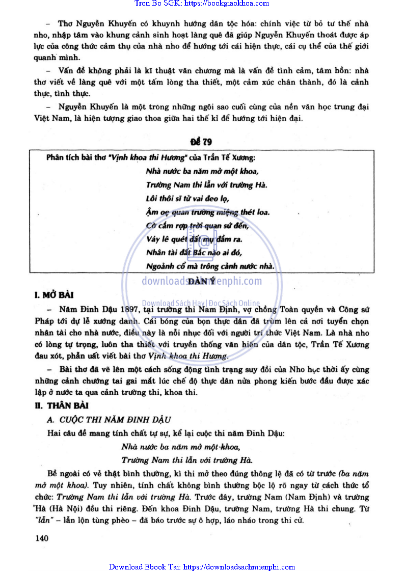 ĐỀ 79. TRONG BÀI “ĐỌC THƠ NGUYỄN KHUYẾN” THI SĨ XUÂN DIỆU VIẾT: “HAI TRỤC CẢM XÚC RẤT RÕ TRONG THƠ NGUYỄN KHUYẾN LÀ QUÊ HƯƠNG LÀNG NƯỚC VÀ ĐỒNG BÀO NHÂN DÂN, KHÔNG PHẢI TÂM HỒN NHÀ THƠ NÀO CŨNG CÓ CẢ HAI TRỤ CỘT NHƯ THẾ”. EM CÓ Ý KIẾN GÌ VỀ LỜI NHẬN ĐỊNH TRÊN