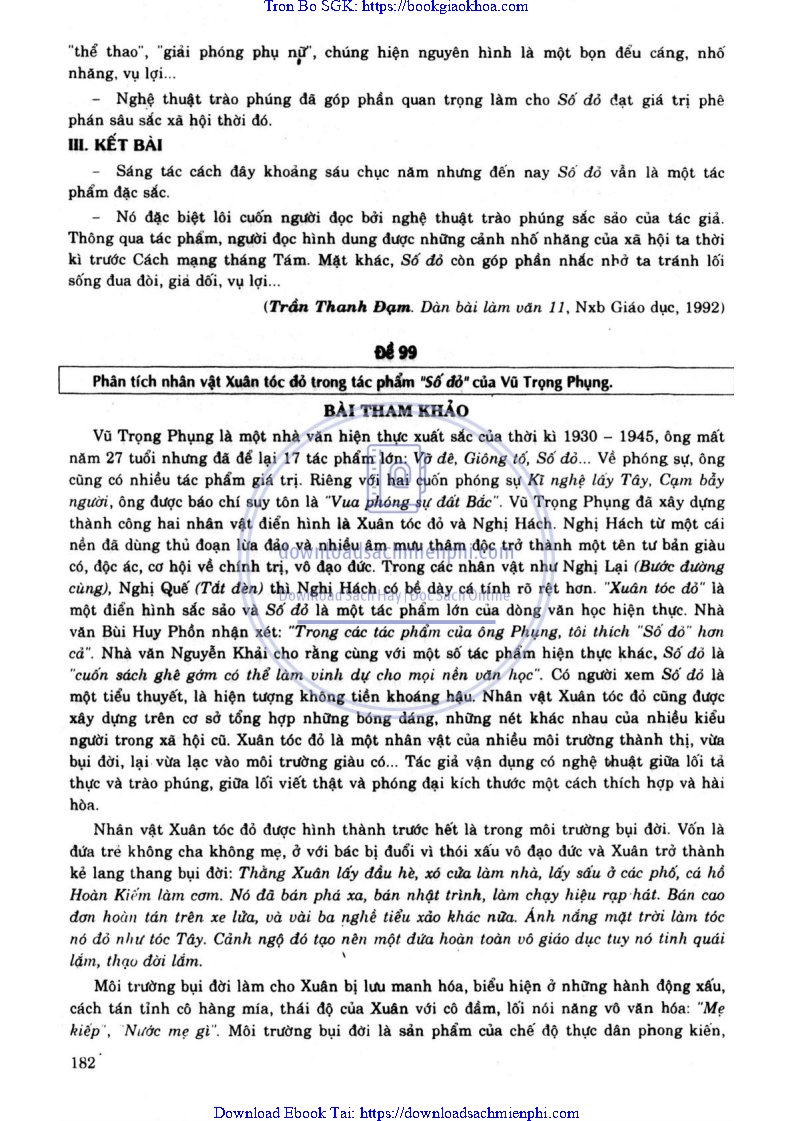 ĐỀ 99. PHÂN TÍCH NHÂN VẬT XUÂN TÓC ĐỎ TRONG TÁC PHẨM “SỐ ĐỎ” CỦA VŨ TRỌNG PHỤNG