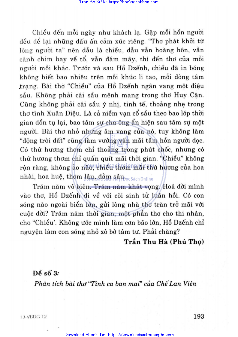 ĐỀ 2. PHÂN TÍCH VẺ ĐẸP BÀI THƠ “CHIỀU” CỦA HỒ DZẾNH (1916-1991)