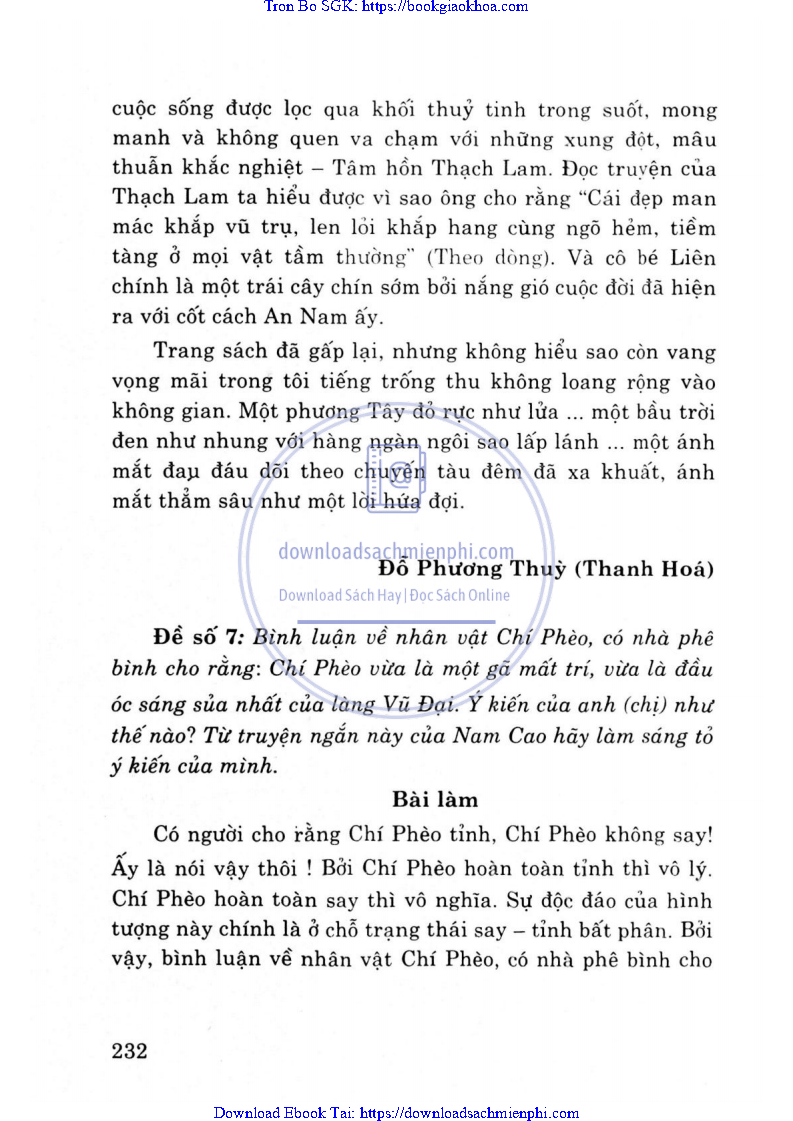 - ĐỀ 7. BÌNH LUẬN VỀ NHÂN VẬT CHÍ PHÈO, CÓ NHÀ PHÊ BÌNH CHO RẰNG: CHÍ PHÈO VỪA LÀ MỘT GÃ MẤT TRÍ, VỪA LÀ ĐẦU ÓC SÁNG SỦA NHẤT CỦA LÀNG VŨ ĐẠI. Ý KIẾN CỦA ANH (CHỊ) NHƯ THẾ NÀO? TỪ TRUYỆN NGẮN NÀY CỦA NAM CAO HÃY LÀM SÁNG TỎ Ý KIẾN CỦA MÌNH